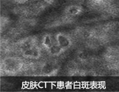 白斑消失,和正常皮肤无异。CT下基底层色素细胞恢复正常皮肤水平。
